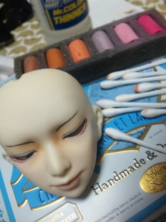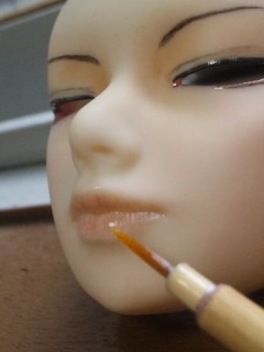 眼の周りの陰影、頬紅、耳、唇などに色を乗せていきます。
