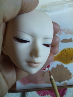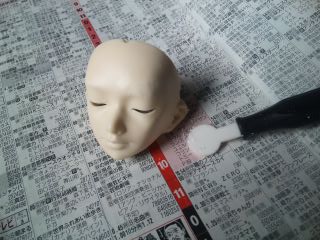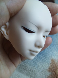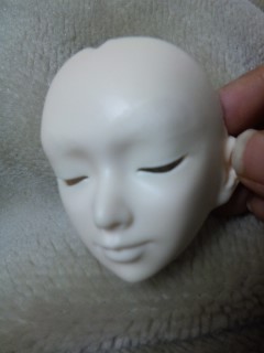 元の造形の眉は雲雀眉には合わないので、カッターで削り取ります。