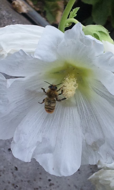近くへ寄るとあまい匂いがして、蜂がたくさん居た。
